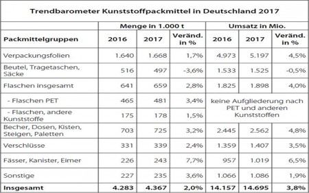 Изучив тенденции рынка, немецкое отраслевое объединение производителей пластиковой упаковки IK Industrievereinigung Kunststoffverpackungen e. V. (Бад-Хомбург) прогнозирует по результатам текущего года рост оборота производства пластиковой упаковки в Германии на 3,8% и увеличение объёма производства на 2%.