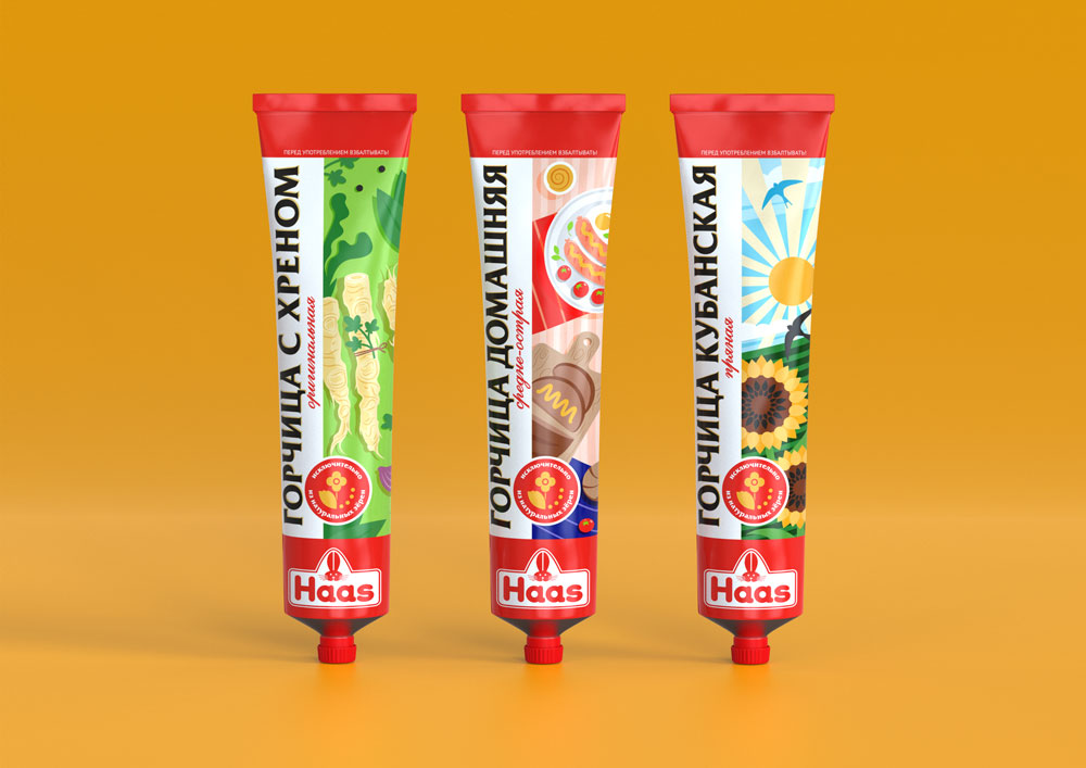 Торговая компания ООО «Пец-Хаас», представляющая ассортимент европейских брендов в России, вывела на рынок горчицу австрийского производителя Haas. Единственной горчице в среднеценовом сегменте, упакованной в алюминиевый тюбик, требуется не менее уникальный и привлекательный визуал, чтобы потребители оценили продукт по достоинству.