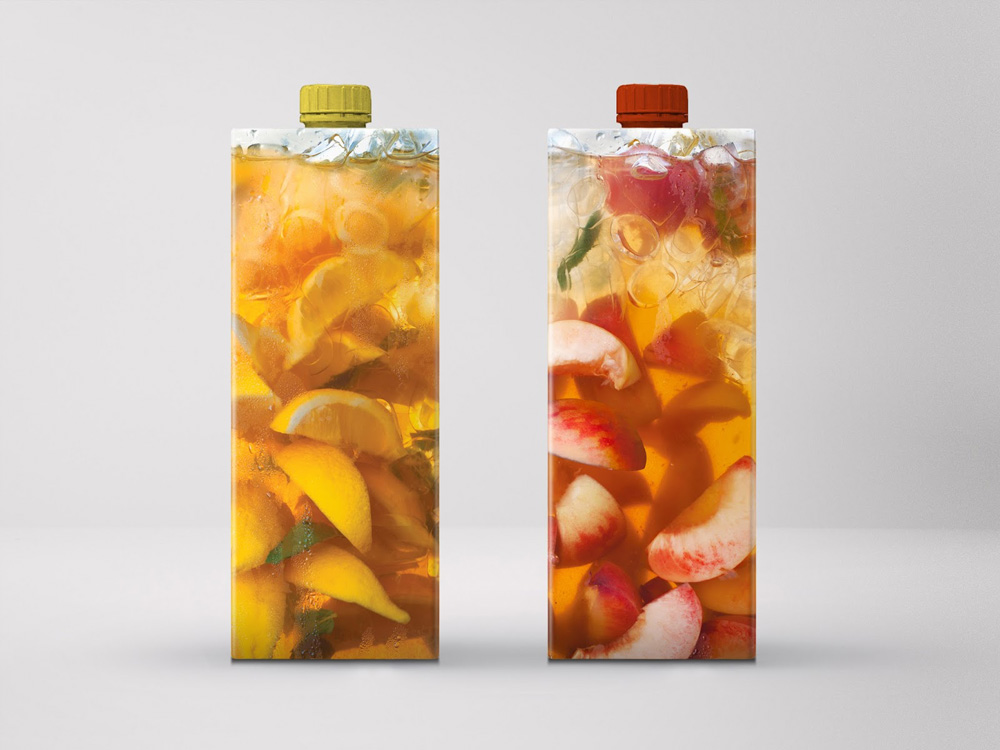В студии сделали фотографии холодного чая с фруктами в прозрачном сосуде и поместили их на упаковки Тетра-Пак. Таким образом, простая идея помогла сделать акцент на натуральные ингредиенты в продукте.