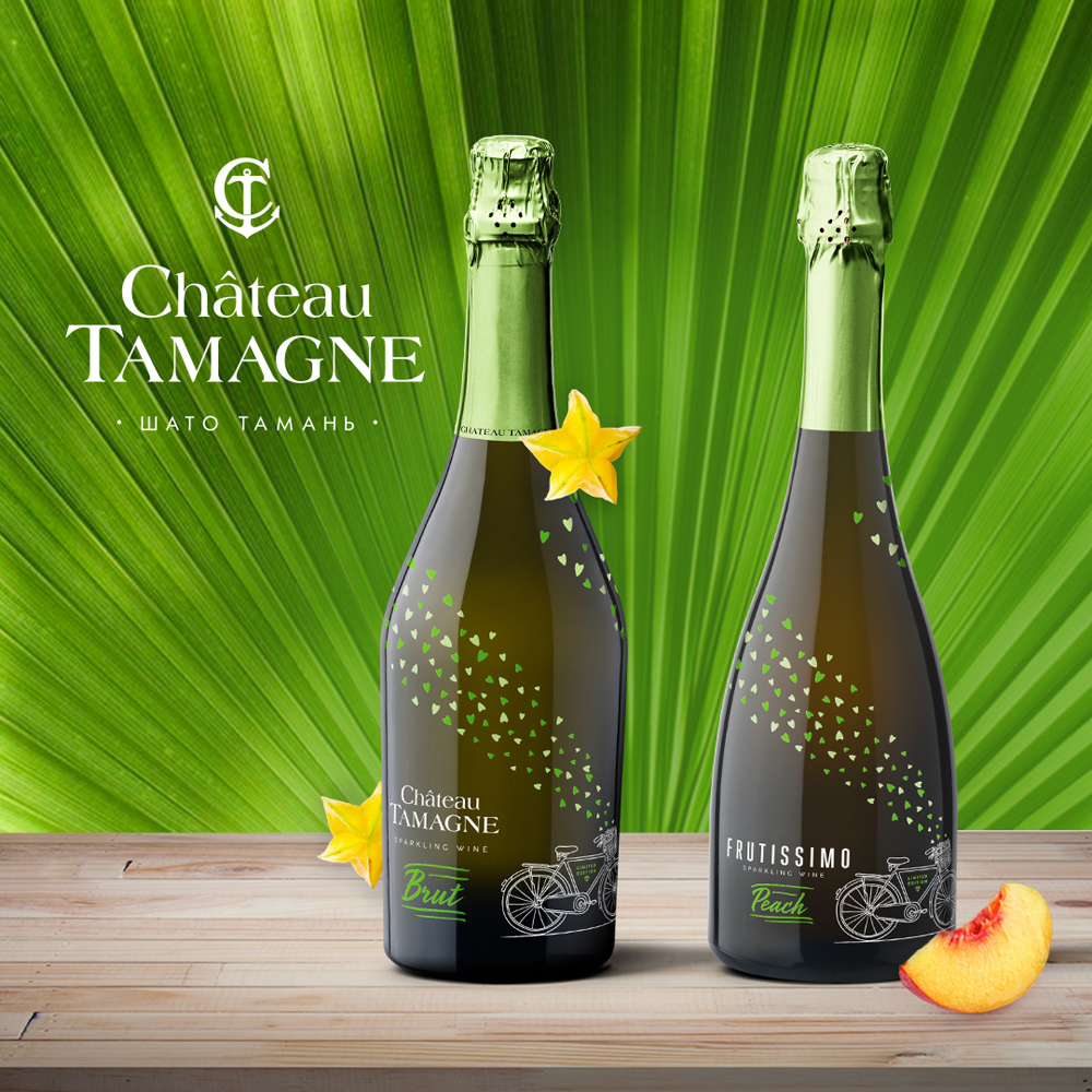 Фирменные магазины «Шато Тамань» встречают лето новым оформлением интерьера и выпуском ограниченной серии вин в эксклюзивном дизайне. В лимитированную коллекцию вошли игристые вина: полусухое белое «Фрутиссимо» с добавлением натурального сока персика и брют белое «Chateau Tamagne». Всего выпущено 7000 бутылок – по 3 500 каждого вида.