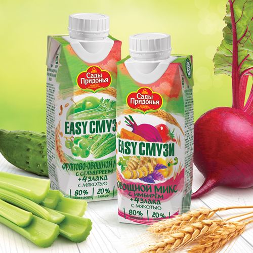 Компания "Сады Придонья" выпустила две новинки. Это фруктово-овощной микс с сельдереем и овощной микс с имбирем Easy Смузи. Они производятся с использованием собственного сырья компании: натурального пюре яблок, свеклы и сельдерея. Богатый и насыщенный вкус новинкам придают экстракты пряных трав, натуральное пюре сладкого перца, имбирь.
