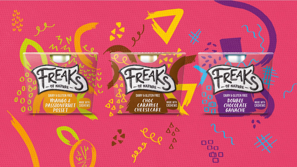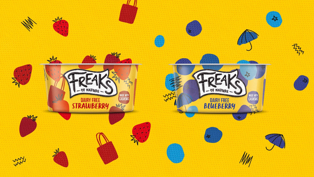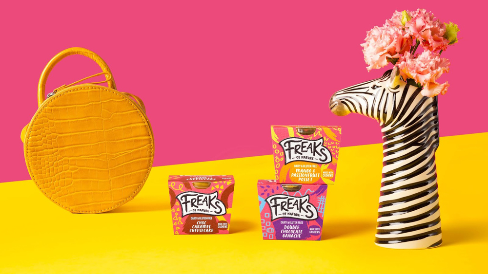 Freaks of Nature – это бренд, который выпускает йогурты и десерты, не содержащие глютен и молочную продукцию. Производство основано на растительных компонентах. В студии BrandOpus решили, что бренду необходим образ уникального продукта, который гордится своим необычным составом и никогда не жертвует вкусом.