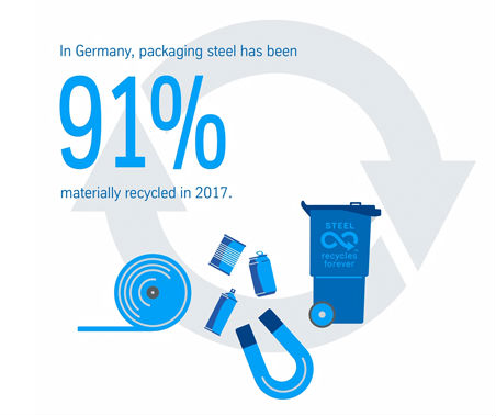 С момента основания немецкой компании рециклинга белой жести DWR (Deutsche Gesellschaft für Weißblechrecycling mbH) и её значительного участия в некоммерческой организации KBS Kreislaufsystem Blechverpackungen Stahl GmbH, компания thyssenkrupp активно способствует вторичной переработке жестяной тары, обеспечивая её возврат в процесс производства стали. Несмотря на то что степень вторичной переработки жести выросла на семь процентных пунктов в период с 2005 по 2017 год, всё ещё есть возможности дальнейшего роста.