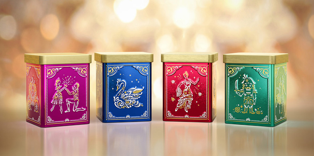 Все упаковки коллекции выполнены в сложной орнаментальной графике, которая визуально продолжает предыдущие лимитированные серии бренда. Силуэты каждого персонажа на сцене театра составлены из небольших элементов, которые ассоциируются как с самим продуктом — чаем, так и с атмосферой праздника и театра.
