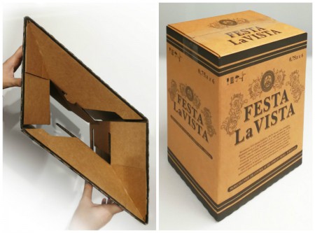 А в номинации «Транспортная тара» награды удостоился короб для шампанского с интегрированными деталями, разработанный для ООО «Группа ЛАДОГА». Транспортный короб предназначен для шести бутылок винного газированного напитка Festa la Vista объемом 0,75 л. Типовая конструкция для ручной сборки была адаптирована под существующую автоматическую линию - конструкторы и дизайнеры компании добились того, чтобы дно короба собиралось на линии и не разбиралось само обратно до укладки продукции. Для решения этой задачи в конструкцию дна был добавлен специальный замочек для его фиксации без дополнительного веса.