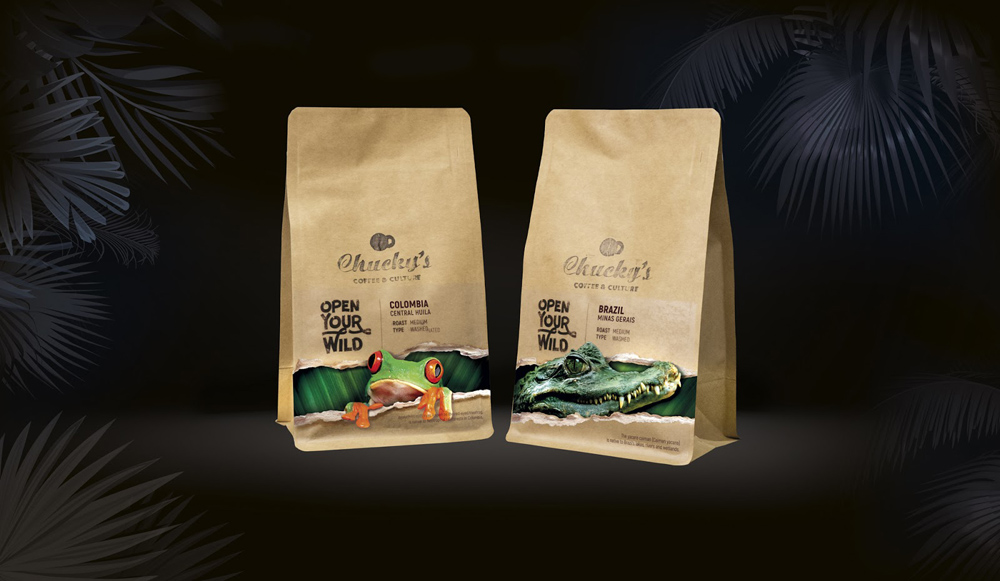 Болгарское агентство Garlic Sofia представляет дизайн упаковки для новой линейки кофе Chucky's Coffee&Culture. Это бренд создан для типичного обитателя городских джунглей.