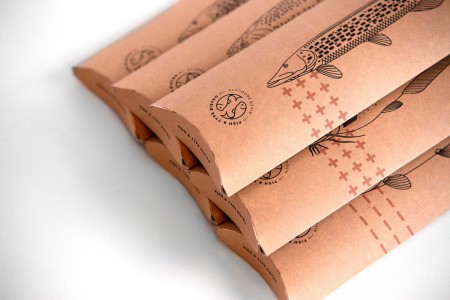 Для создания упаковки приготовленной пресноводной рыбы использовались картон и цифровая печать.