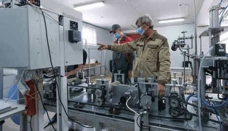 Новая линия с ультразвуковым узлом для припайки петель производит трехслойные лицевые маски из нетканых материалов. Ее мощность – 60 штук в минуту или до 75 тысяч в сутки. Оборудование разработал и собрал «КраснодарСтанкоСтроитель» при помощи краевых предприятий машиностроения и поддержке регионального департамента промышленной политики.