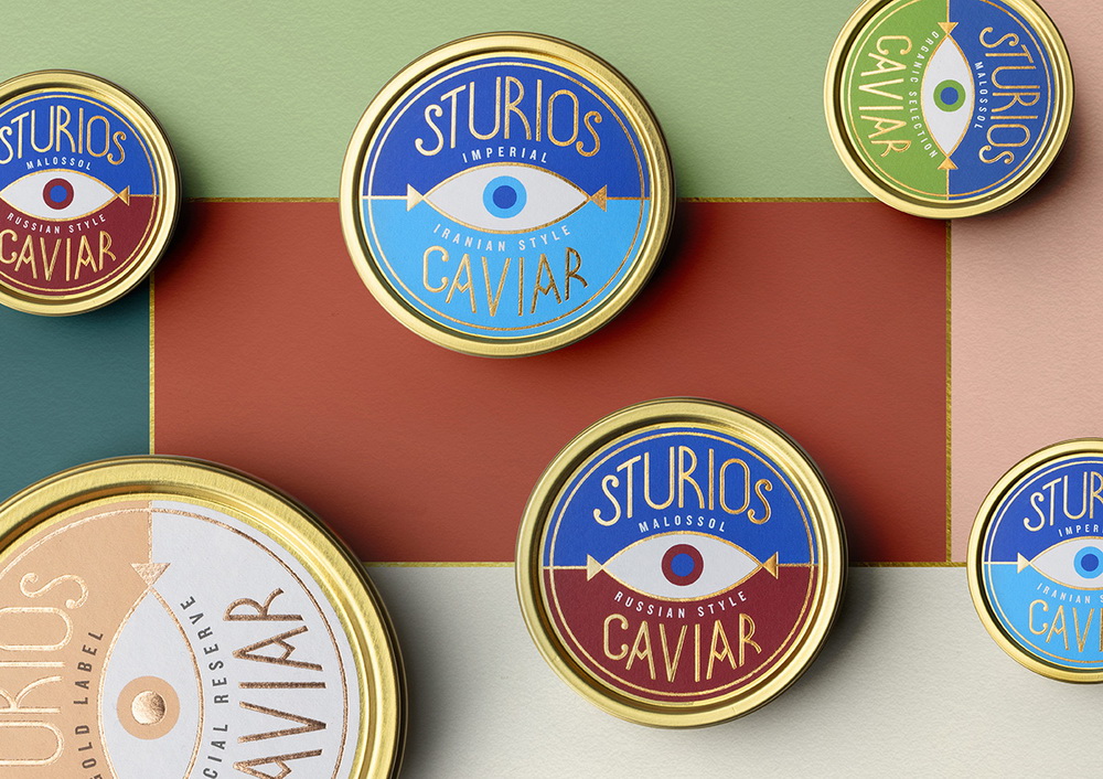Испанское агентство lacía Packaging Design разработало бренд, айдентику и дизайн упаковки для икры Sturios. В основе бренда лежит эстетика «ревущих 20-ых».