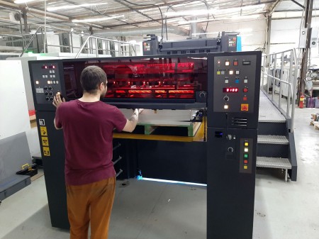 Установленная Komori GL-837P работает по технологии H-UV, машина включает восемь печатных секций и устройство переворота листа. Что позволяет за один прогон получить на выходе полноцветный двухсторонний оттиск.
