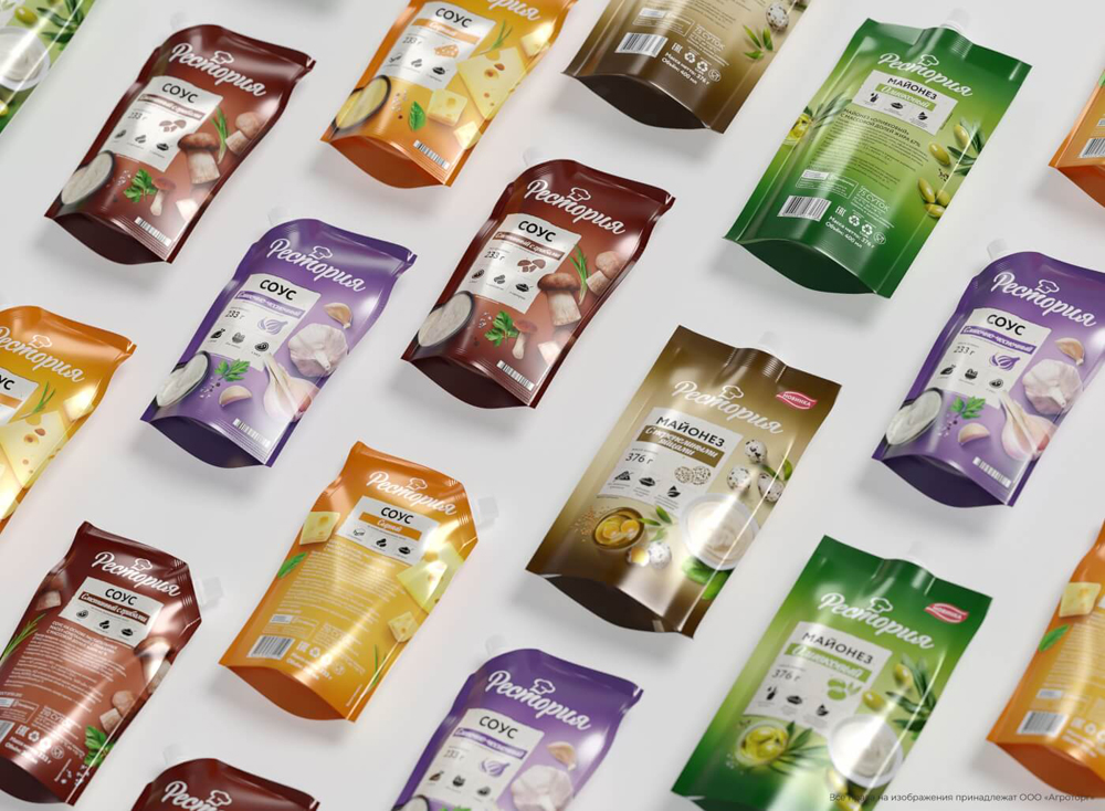 Агентство Yasno.branding выполнило адаптацию дизайна упаковки для линеек майонезов и соусов бренда "Рестория".