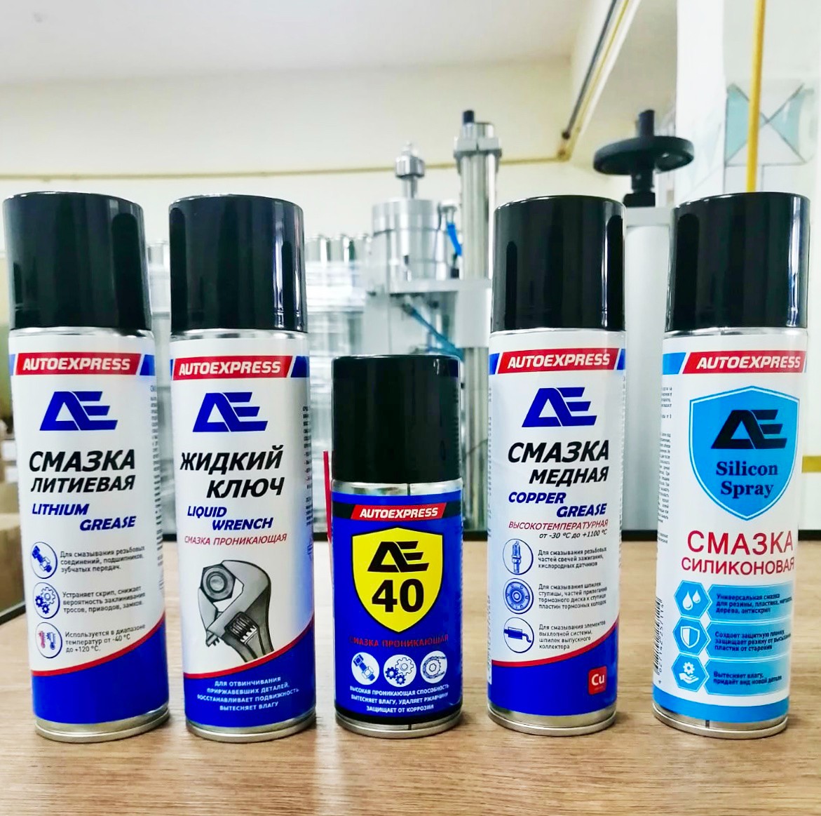 В ближайшее время компания выпустит на рынок новый удобный формат смазочных материалов в аэрозольных баллонах: жидкий ключ, AE-40, литиевые, медные и силиконовые смазки-спреи, применяемые в автомобильной отрасли. Благодаря дополнительной насадке-трубочке на упаковке спрей способен проникать в любые труднодоступные места.