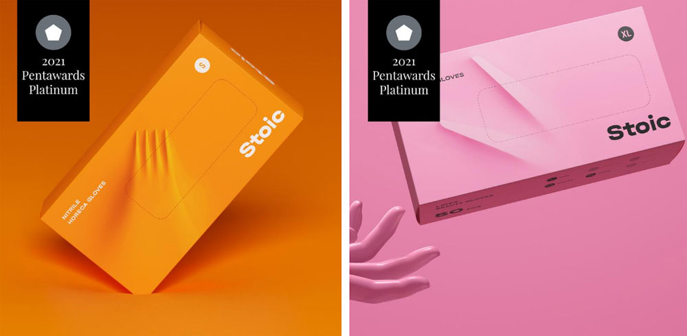 Платиновая награда присуждена дизайнерам агентства OTVETDESIGN за упаковку одноразовых перчаток Stoic. Категория – концептуальная профессиональная работа (красота, здоровье, уход за телом).
