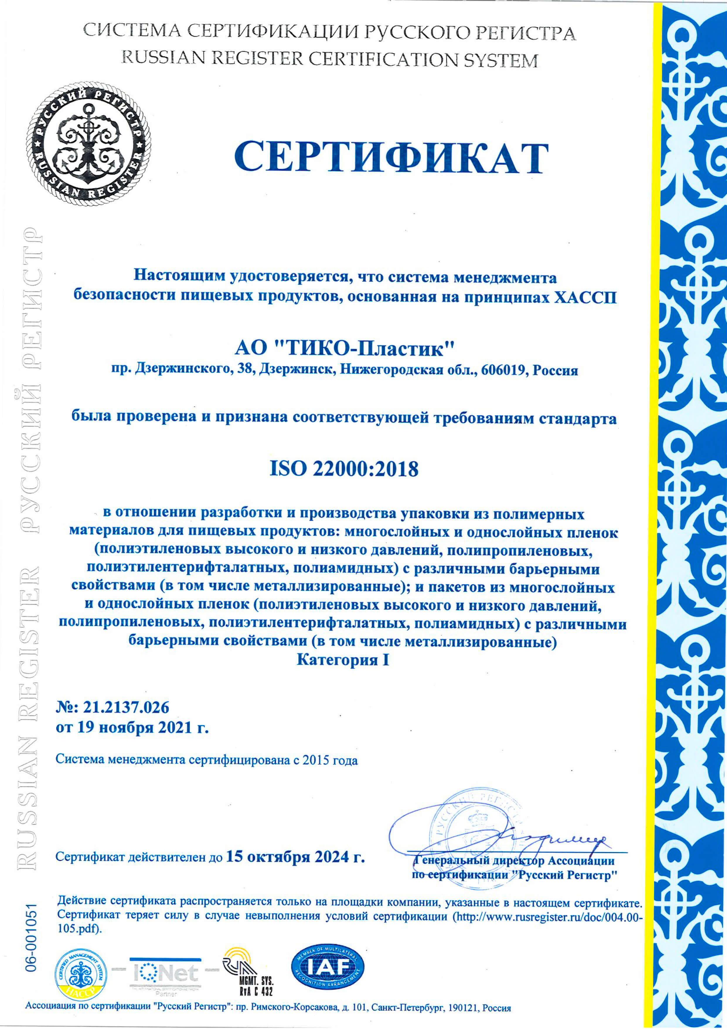 Безопасность и качество полимерной упаковки ТИКО-ПЛАСТИК вновь подтверждено на соответствие ISO 22 000