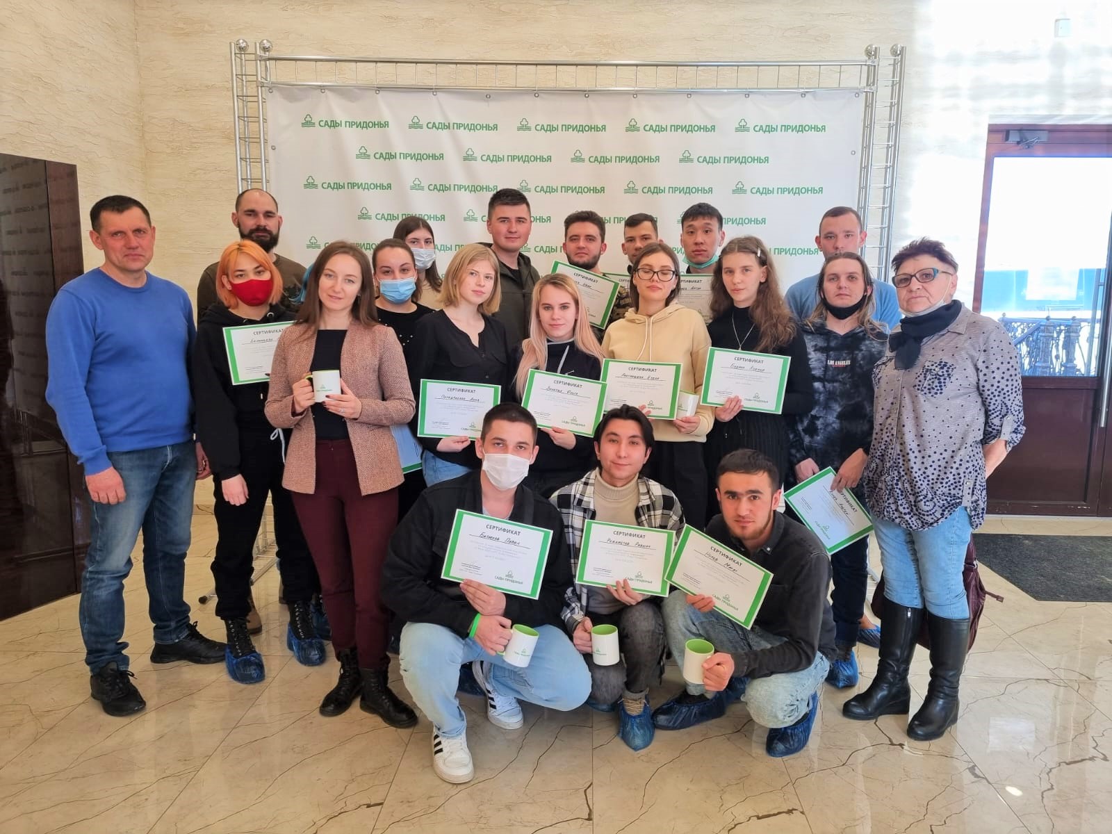 В рамках сотрудничества предприятия и университета, в прошлом году на площадке компании «Сады Придонья» было организовано обучение студентов в области агрономии, в программу которого входили вопросы необходимой теоретической части и практические занятия. Студенты агротехнологического факультета специальности «Агрономия» и «Садоводство» раз в неделю посещали производство и сады. Под руководством аграриев компании выпускники изучали вопросы защиты растений, их питания, полив, сбор урожая… Экзамены принимала специальная комиссия, в состав которой вошли ведущие специалисты сельскохозяйственного подразделения Садов Придонья.
