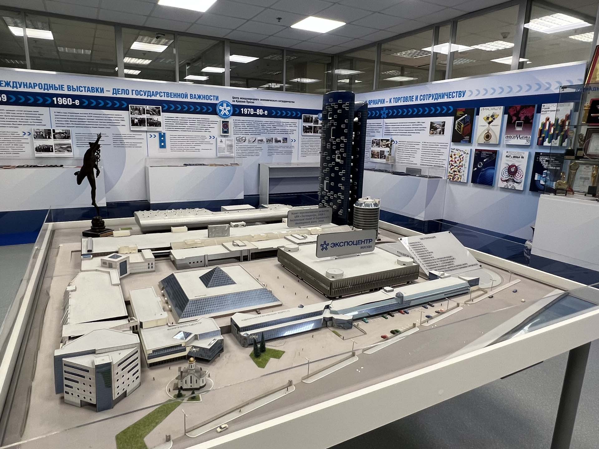 Экспозиция охватывает период с 1959 года по настоящее время. Здесь можно не только ознакомиться с основными направлениями развития выставочного дела в нашей стране на примере работы Центрального выставочного комплекса, но и увидеть уникальные экспонаты – каталоги и памятные значки первых международных выставок, фотографии известных государственных деятелей, посещавших в разное время «Экспоцентр», информационные сборники ТПП СССР с программами выставочных мероприятий того времени, многочисленные награды, полученные «Экспоцентром» за достижения в выставочной деятельности.