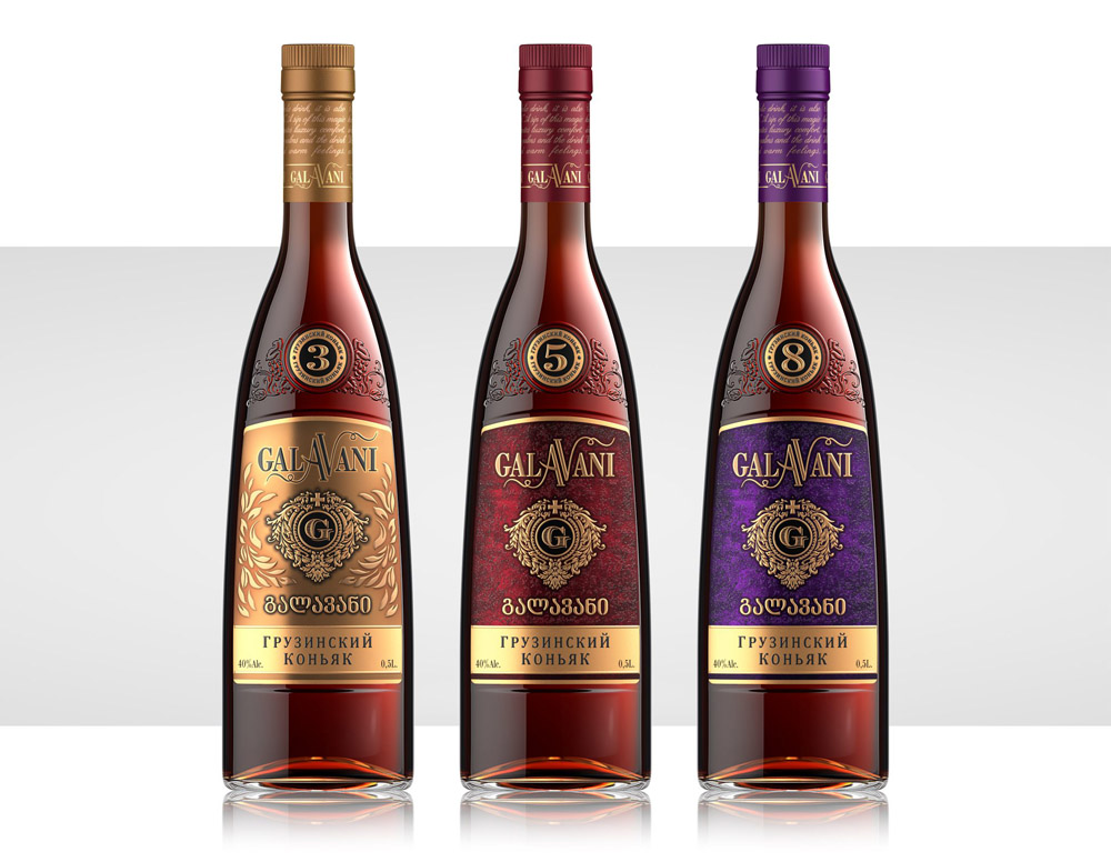 GALAVANI – это хорошо известный своему потребителю бренд. Под этим брендом выпускаются грузинские вина и коньяки. Таким образом бренд работает в двух продуктовых категориях. Перед дизайнерами стояла задача осуществить рестайлинг этикеток и для вин и для коньяков, при этом сохранить преемственность оформления, а сам логотип торговой марки оставить без изменений.