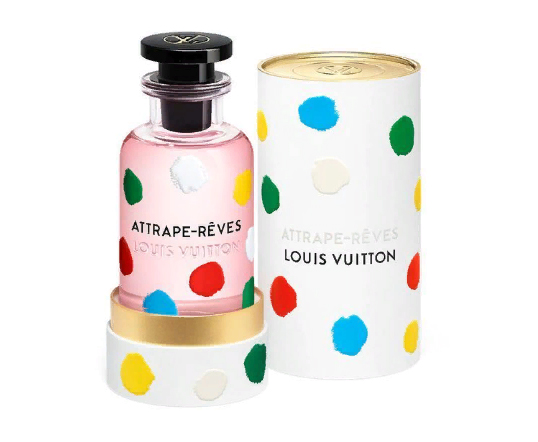 Яёи Кусама (Yayoi Kusama), 93-летняя художница, известная своими причудливыми работами, создала для бренда Louis Vuitton дизайн для трех флаконов с туалетной водой.