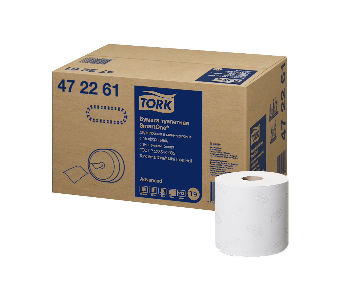 Туалетная бумага в мини-рулонах предназначена для использования в диспенсерах Tork SmartOne® системы Т9.