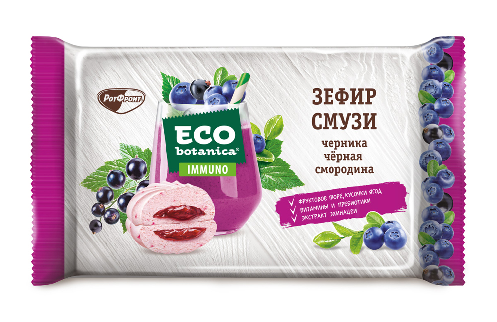 "Иммуно" - это нежный зефир-смузи с полезными для иммунитета добавками и мягкими желейными начинками: абрикос-манго с экстрактом гуараны, мелисса-апельсин с экстрактом имбиря и черная смородина-черника с экстрактом эхинацеи. У зефира нет аналогов среди продукции крупных производителей на рынке, а его цена - на уровне обычного зефира.