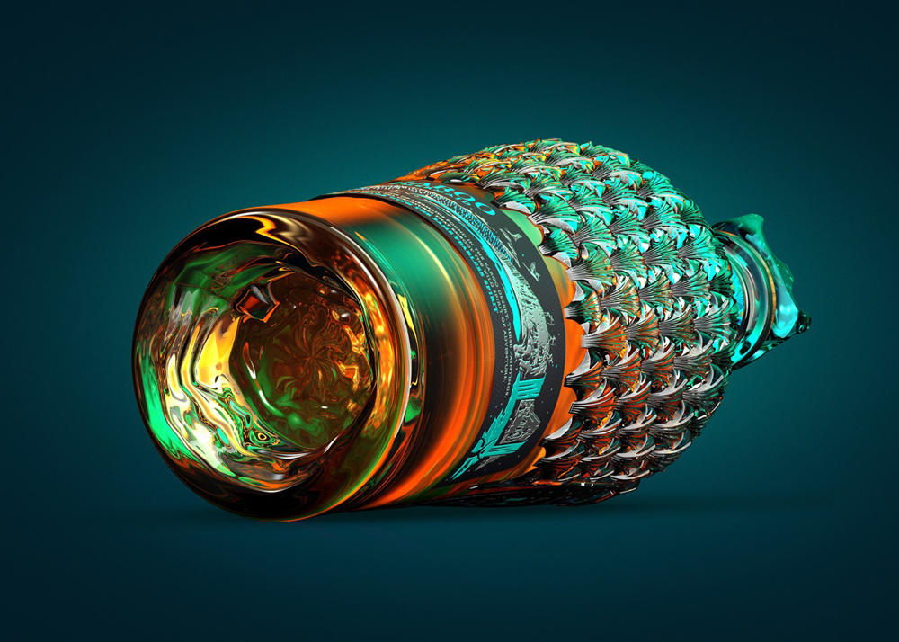 В агентстве использовали стандартную бутылку компании Estal, но со специальным тиснением. Искусственный интеллект сгенерировал узоры и текстуры, сочетающие чешую русалок с узорами растения агава, создав красивый, уникальный узор. Дизайнеры также разработали пробку, напоминающую агаву.