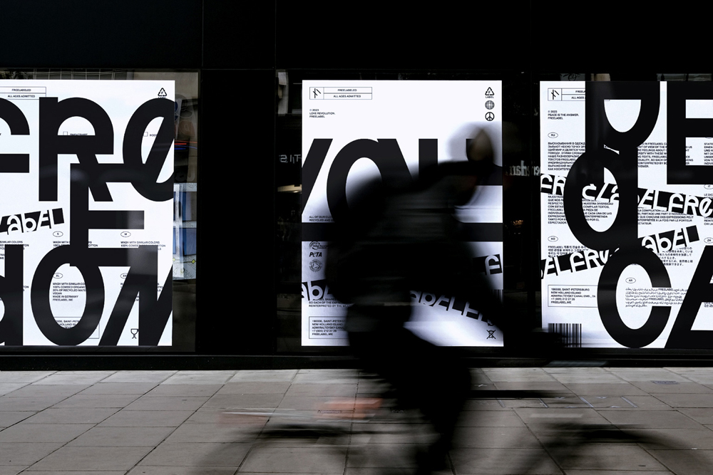 Свобода, уникальность и проявление индивидуальности являются основными ценностями бренда Freelabel. Поэтому дизайнеры вдохновились плакатами и леттерингом, которые создавались людьми при помощи подручных средств, людьми, выходившими на протестные митинги и демонстрации во всем мире и высказывавшими свою позицию. Идея показалась удачной, потому что у Freelabel дизайнеры увидели много цитат и высказываний, размещенных на одежде, продающейся в магазине.