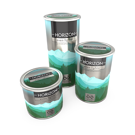 В июне 2023 г. Eviosys представила первую версию крышки Horizon. Это бесконечно перерабатываемая металлическая крышка, специально разработанная для закрывания банок, предназначенных для рынков детского питания, чая, кофе, печенья и т. д. Новая версия крышки дополнительно снизила вес, что позволяет сократить количество условных выбросов CO2 на 33% (по сравнению с первой версией). Еще более легкая (вес снижен с 15 до 5,8 г) крышка Horizon для банки диаметром 99 была полностью оптимизирована. Horizon облегчает замену пластиковых крышек, которые в настоящее время присутствуют на некоторых металлических банках, предназначенных для повторного закрытия (печенье, кофе, детское молоко и т. д.), на решение из одного материала, которое полностью выполнено из металла и, следовательно, пригодно к вторичной переработке бесконечное количество раз.