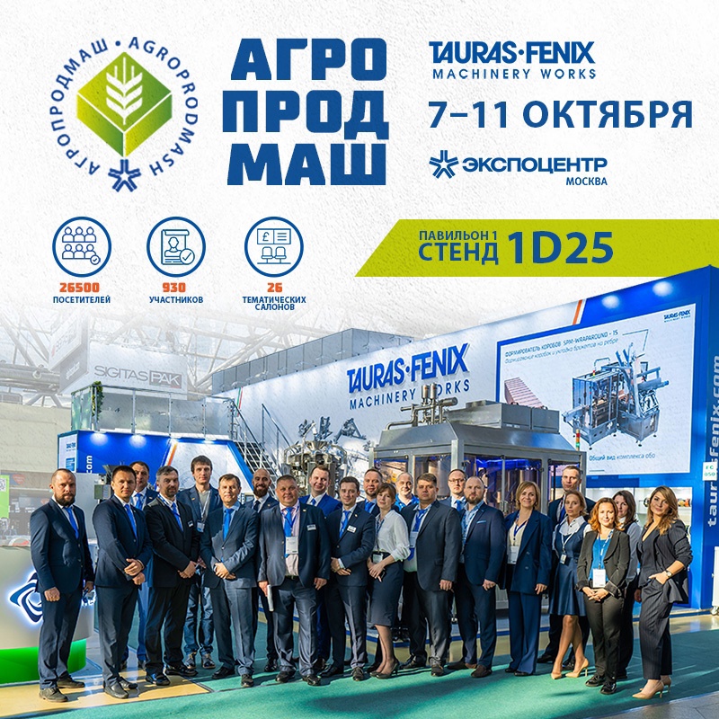 С 7 по 11 октября ТАУРАС-ФЕНИКС представит универсальные решения для упаковки пищевой продукции на выставке «Агропродмаш». Посетители познакомятся с новейшими разработками и современными технологиями.