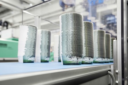 An Allrounder 570 H in the "Packaging" version with a clamping force of 1,800 kN, specially configured for thin-walled items, will demonstrate the performance capabilities of the Hidrive hybrid machine series at Interplastica 2018. The production cell produces four IML tubs with a wall thickness of only 0.32 millimetres from PP in a cycle time of around 1.9 seconds. Each container weighs 3.55 grams and has a capacity of 150 millilitres. The mould and the automation system for inserting the IML labels and removing and stacking the decorated finished parts are from Brink. The material throughput is more than 26 kilograms per hour.