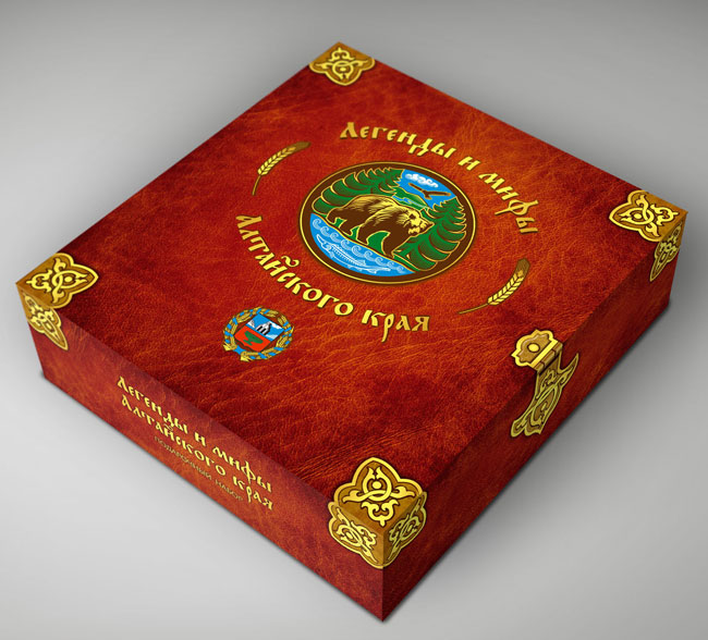 Дизайнерский короб, который содержит печенье, разработан специально в виде старинной книги с имитацией кожаного переплета. Внутри упаковки находится уникальная книга, которая объединяет огромное количество мифов и легенд об Алтайском крае. Специально для наполнения информацией издания маркетинговой службой предприятия была совершена экспедиция в различные города и села региона.