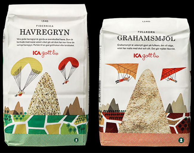 Шведская группа компаний ICA выпустила линейку с широким ассортиментом продуктов питания Gott liv. Иллюстрации и упаковочный дизайн создавались иллюстратором Класом Фаленом (Klas Fahlen).