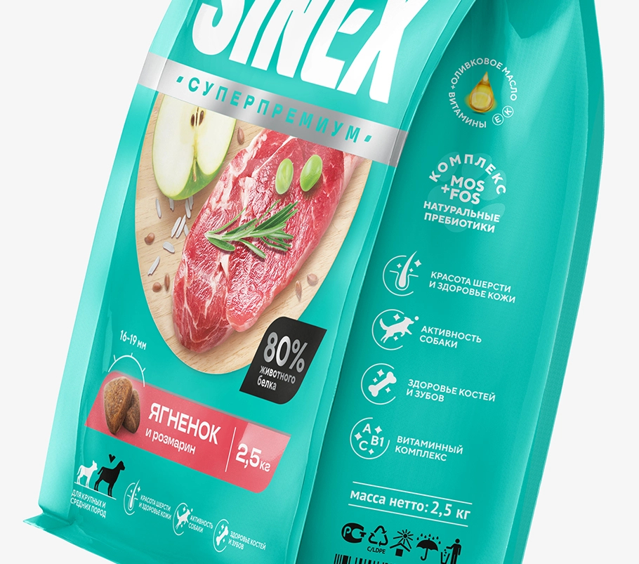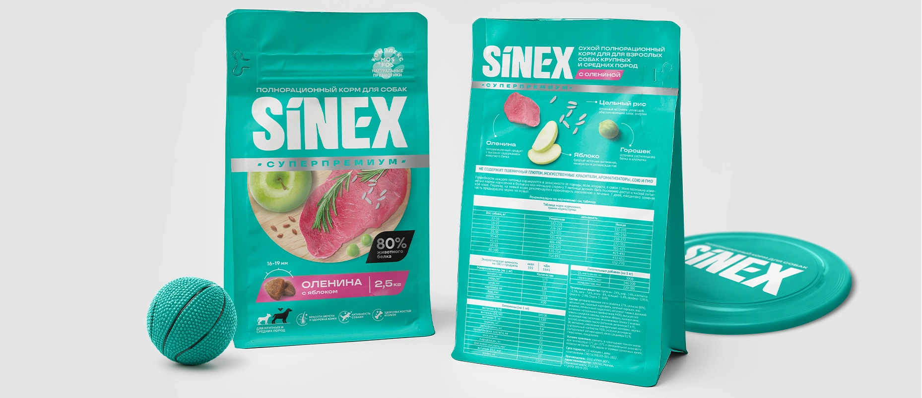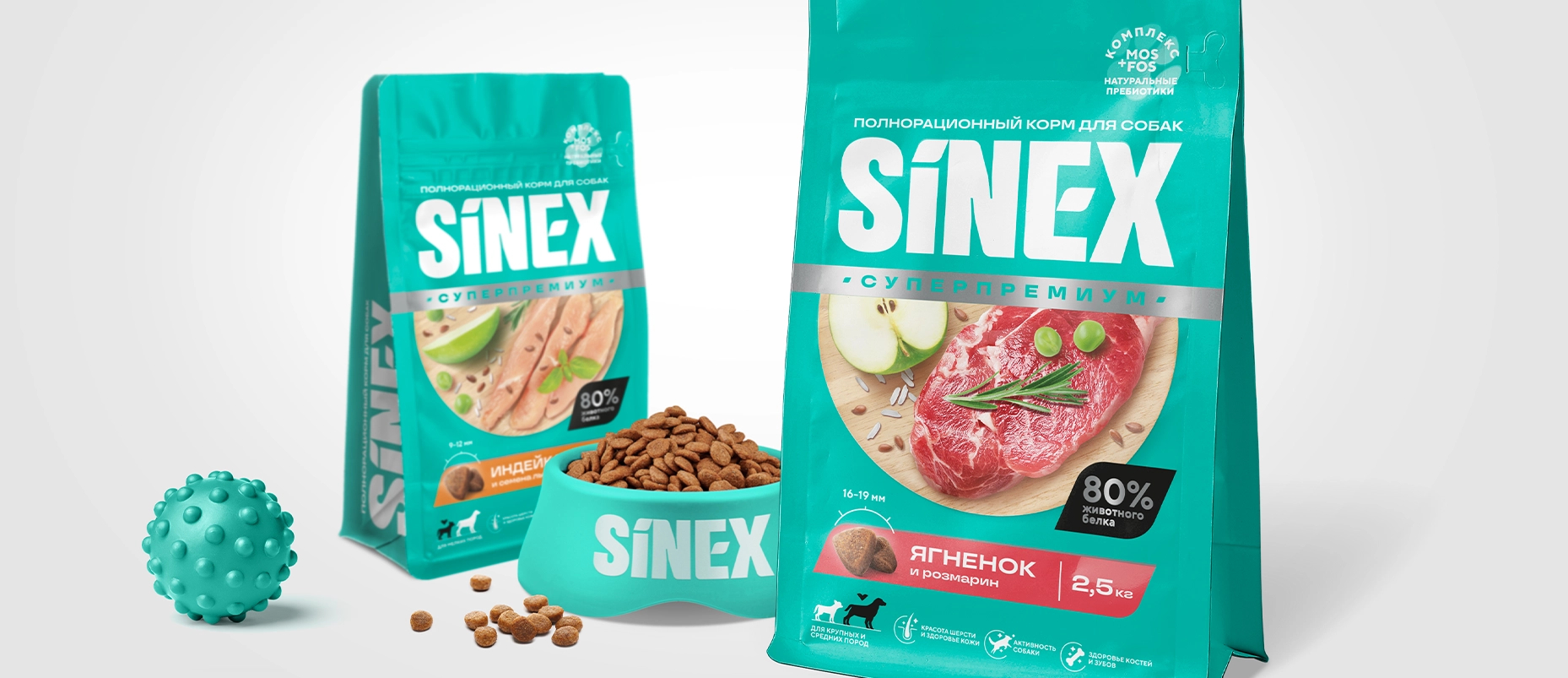 Производитель корма для собак «Глобалсин» запланировал выпуск продукции премиум-класса Sinex. Но рынок кормов для домашних животных характеризуется высокой конкуренцией и сформированным доверием потребителей к известным маркам, присутствующим на рынке. Необходимо было сделать товар заметным на полках за счет дизайна упаковки и вызвать доверие у потребителя.