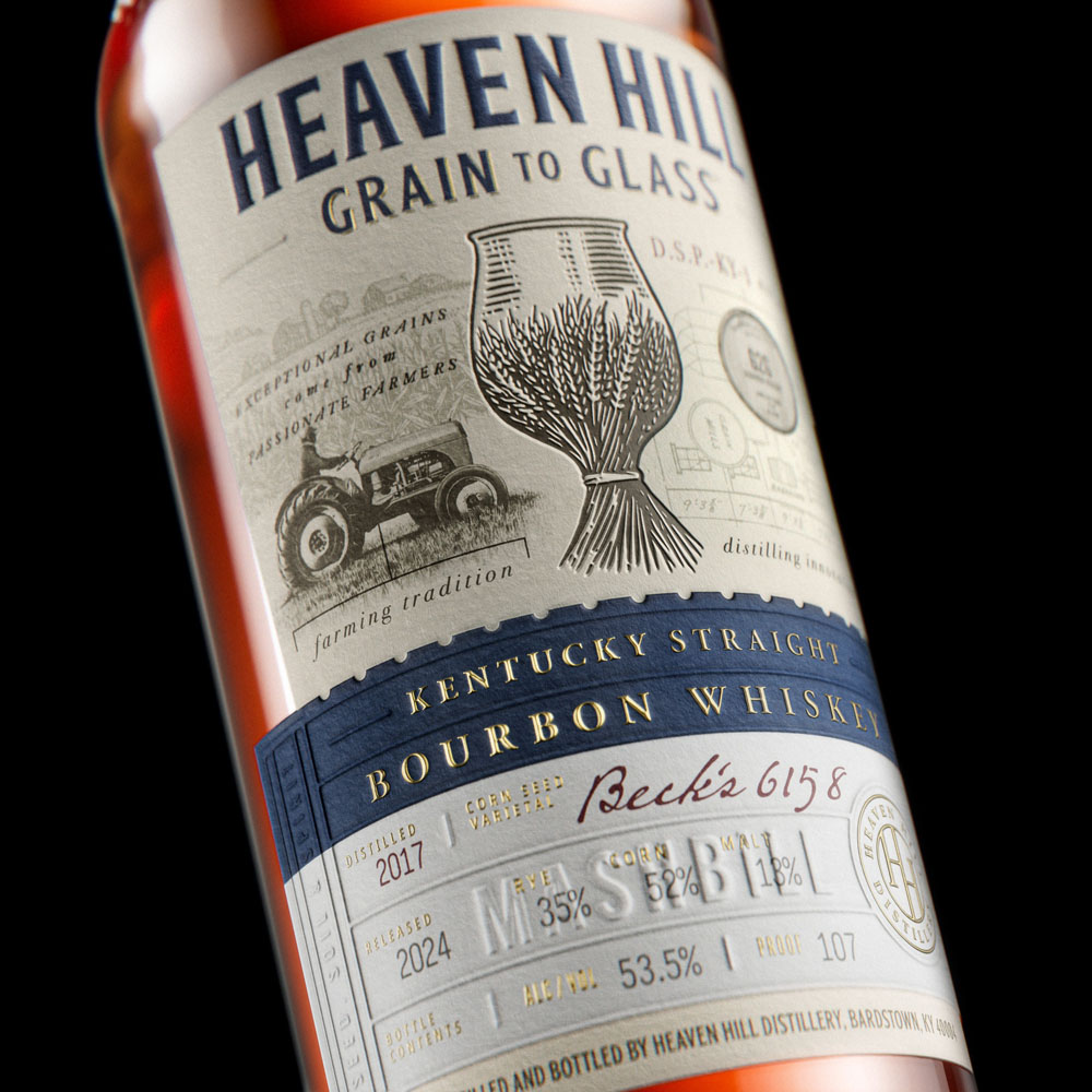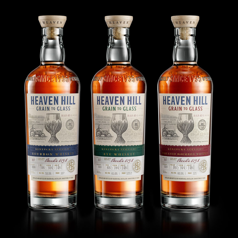 Heaven Hill Distillery – семейная винокурня из Кентукки, которая производит бурбон с 1935 года. Новая линейка от производителя называется Grain to Glass (пер.: зерно в стакан). Специалисты агентства создали говорящую этикетку, которая подробно «рассказывает» историю компании и бурбона. Верхняя часть этикетки посвящена процессу создания, а нижняя содержит всю информацию в цифрах.