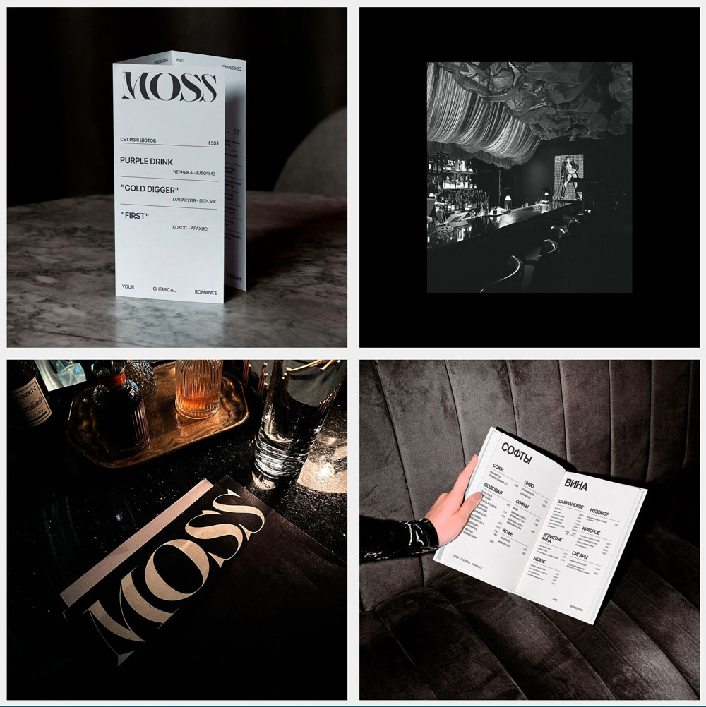 MOSS – это концептуальный бар с эксклюзивной культурой, где смешивается роскошь и гранж, бунтарский стиль и гламур. Эстетика бара вдохновлена атмосферой 90-х, когда супермодель Кейт Мосс стала иконой стиля и воплощением мятежной роскоши. Гости бара — это дерзкие молодые девушки и парни, неприлично красивые, яркие. Правила для них существуют лишь для того, чтобы их нарушать. В атмосфере MOSS они чувствуют себя свободно и могут максимально себя проявить.