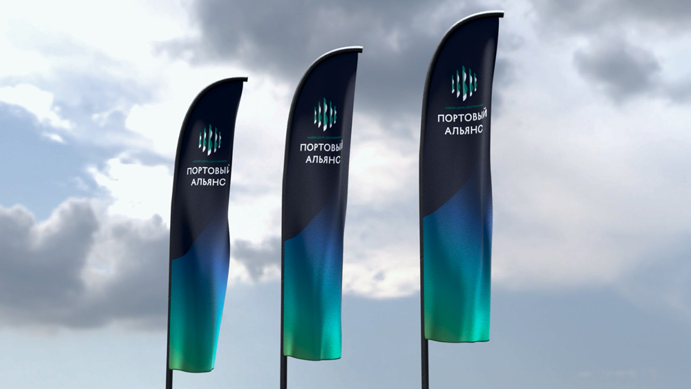 Фирменный знак, созданный на основе ритмического визуального повтора, — это, в первую очередь, образ парусов, то есть многочисленных судов, прибывающих в порты альянса. Также здесь можно увидеть те самые «все флаги будут в гости к нам», что поддерживает и усиливает концепцию разнообразия, масштаба, широкого охвата деятельности. Выраженное стремление знака вверх делает его доминантой на всех носителях, вертикалью, призванной рождать ощущение уверенности и целеустремленности.