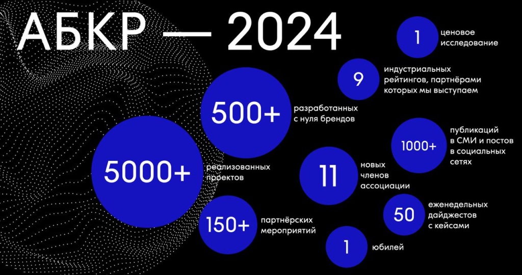 2024 год был для АБКР очень насыщенным и продуктивным. За этот год агентства АБКР реализовали 5000+ проектов и разработали 500+ новых брендов. АБКР отметила своё 15-летие и приняла в свои ряды 11 новых членов.
