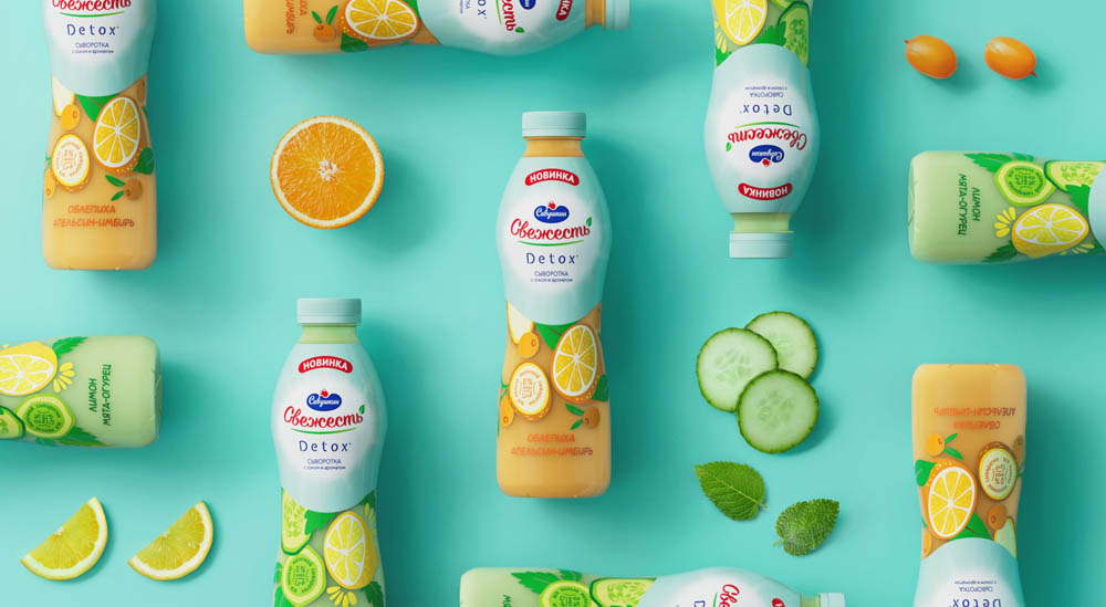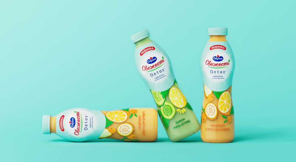 Главные ассоциации со словом «детокс» – очищение, чувство легкости и, конечно, отличное настроение. Именно эти атрибуты легли в основу дизайна новой линейки напитка «Свежесть. Detox». Свежая и позитивная цветовая гамма, воздушный дизайн и много-много вкуса – упаковка линейки Detox получилась максимально «легкой» и аппетитной.