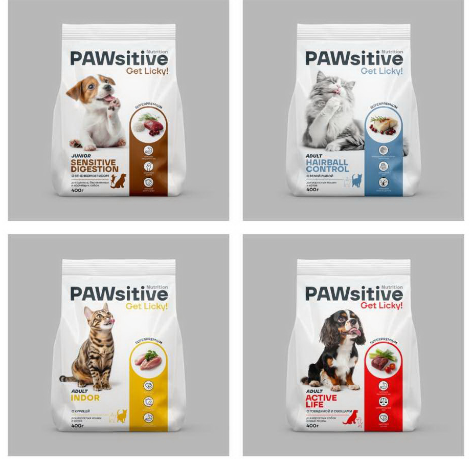 Команда Art Groove провела комплексный брендинг линейки упаковок полнорационного корма суперпремиум-класса Pawsitive Nutrition. Дизайнеры разрабатывали концепцию с мыслью, что покупателю должно быть приятно взять упаковку корма в руки, и чтобы ему не захотелось ставить её обратно на полку.