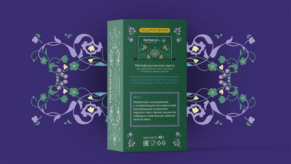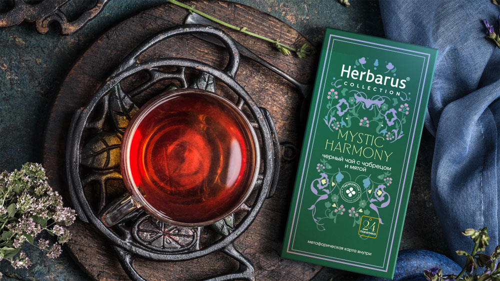 Команда агентства "Дюшес" разработала новую линейку чая Herbarus в коллаборации с сетью "Перекресток". Под линейкой "Mystic Harmony" было разработано три уникальных вкуса: улун с мятой и мелиссой, спокойствие и баланс с мятой и ромашкой, а также черный чай с чабрецом и мятой.