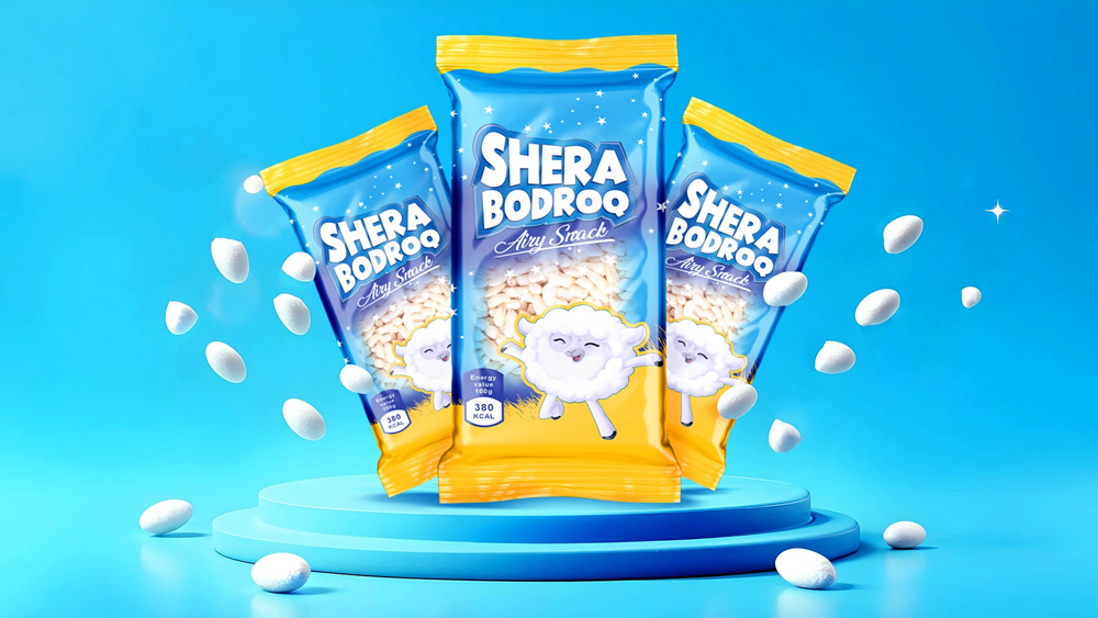 Агентство Minim разработало новый дизайн упаковки для детских сладостей Shera Bodroq. Обновленный продукт готовится не из кукурузы, как раньше, а из риса. Необходимо было вдохнуть новую жизнь в бренд, передать ощущение легкости и воздушности.
