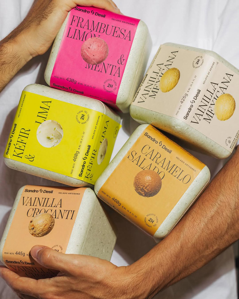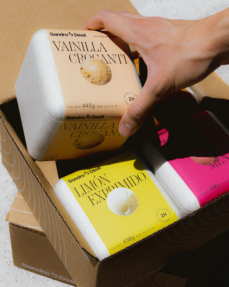 Испанская студия Requena разработала новый дизайн упаковки дл мороженого Sandro Desii. Новый элегантный фирменный стиль является визуальным продолжением гастрономических изысканий испанского бренда.