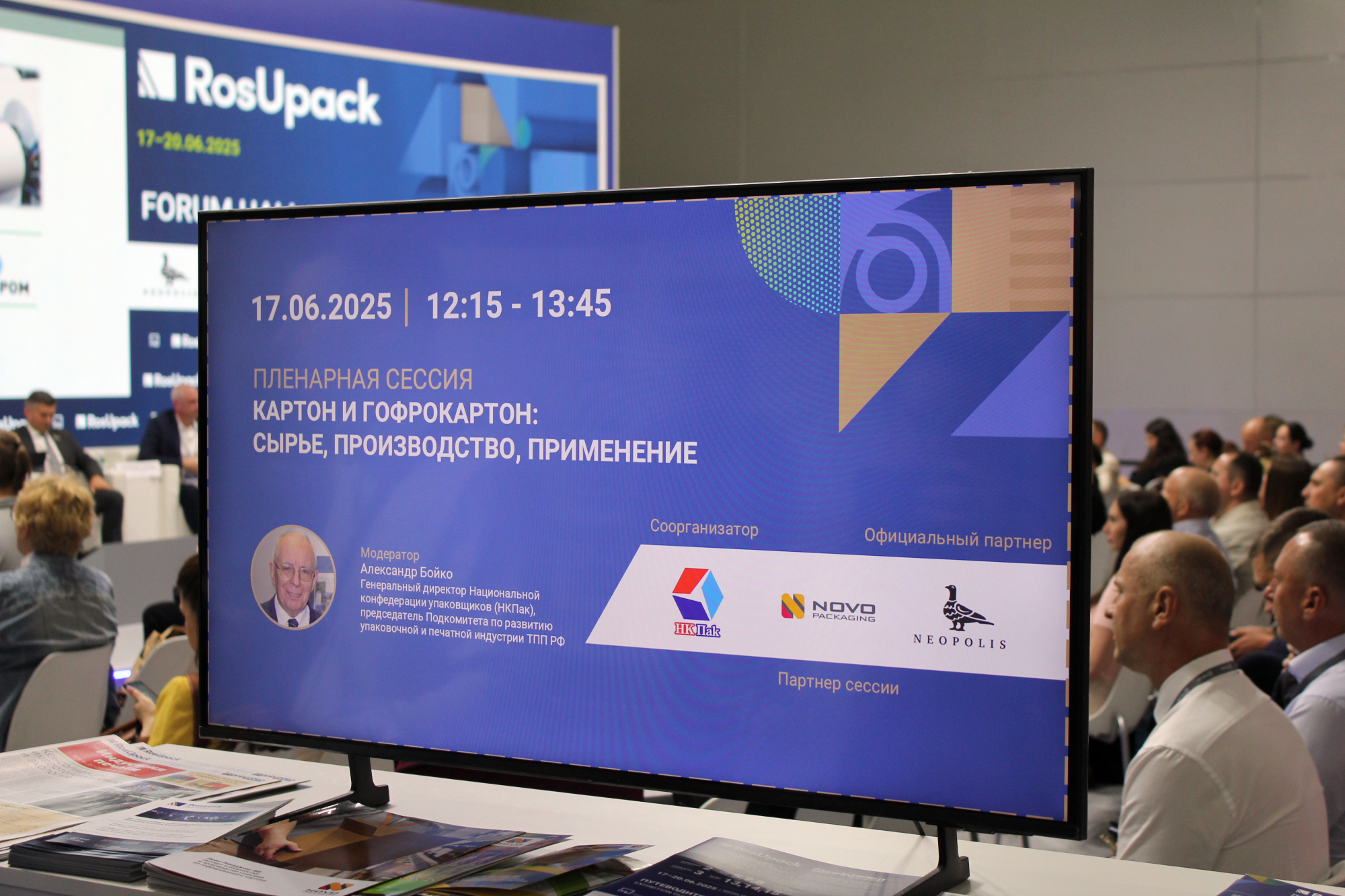 В день открытия международной выставки упаковочной отрасли RosUpack 2025 в рамках Форума производителей и потребителей упаковки состоялась пленарная сессия «Картон и гофрокартон: сырье, производство и применение», модератором которой выступил Александр Бойко, генеральный директор Национальной конфедерации упаковщиков (НКПак) и председатель Подкомитета по развитию упаковочной и печатной индустрии ТПП РФ.