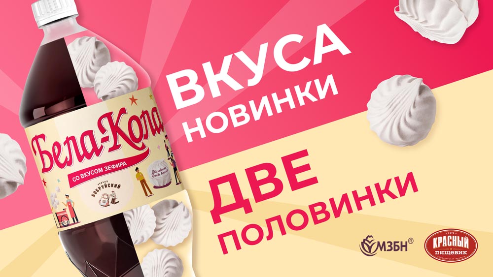 Минский завод безалкогольных напитков (МЗБН) представил главную коллаборацию этого лета - с ОАО "Красный пищевик". В результате появилось два новых продукта: зефир со вкусом Бела-Кола и Бела-Кола со вкусом зефира "Первый бобруйский".