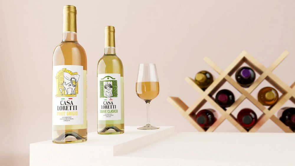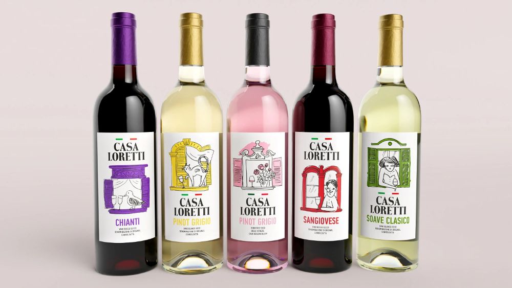 Брендинговое агентство Depot разработало нейминг и дизайн упаковки итальянских вин Casa Loretti для сети магазинов-дискаунтеров "Чижик". Перед агентством стояла задача разработать нейминг и дизайн собственного бренда и создать ясную ассоциацию с местом производства вин — солнечной Италией.