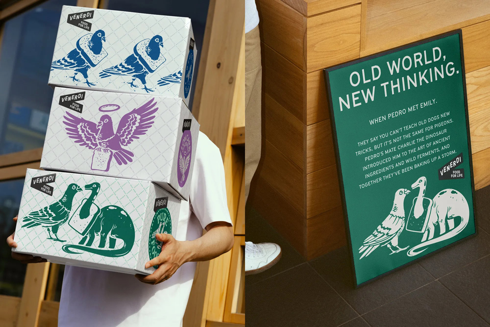 В агентстве решили использовать дизайн упаковки Gluten Freedom для более широкой категории изделий. Теперь голубь Педро рекламирует не только безглютеновый хлеб. А на упаковках с палео-хлебом он “встречается” с бронтозавром Эмили.