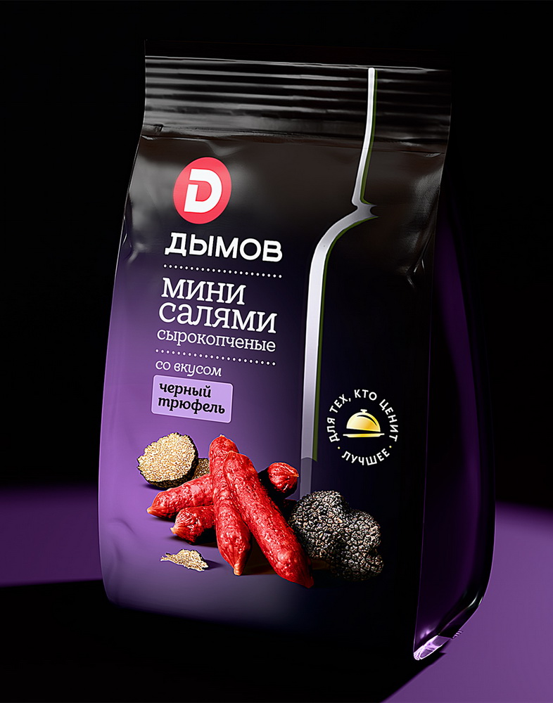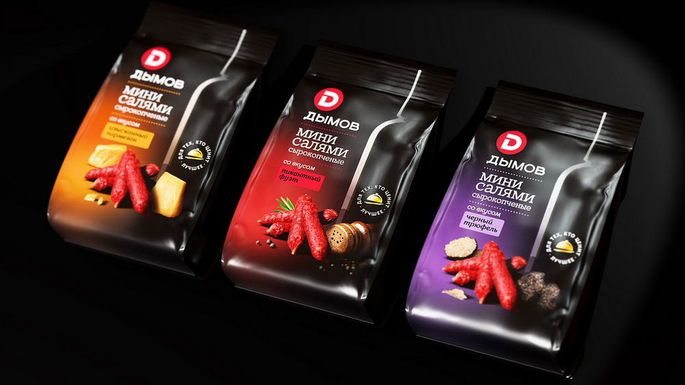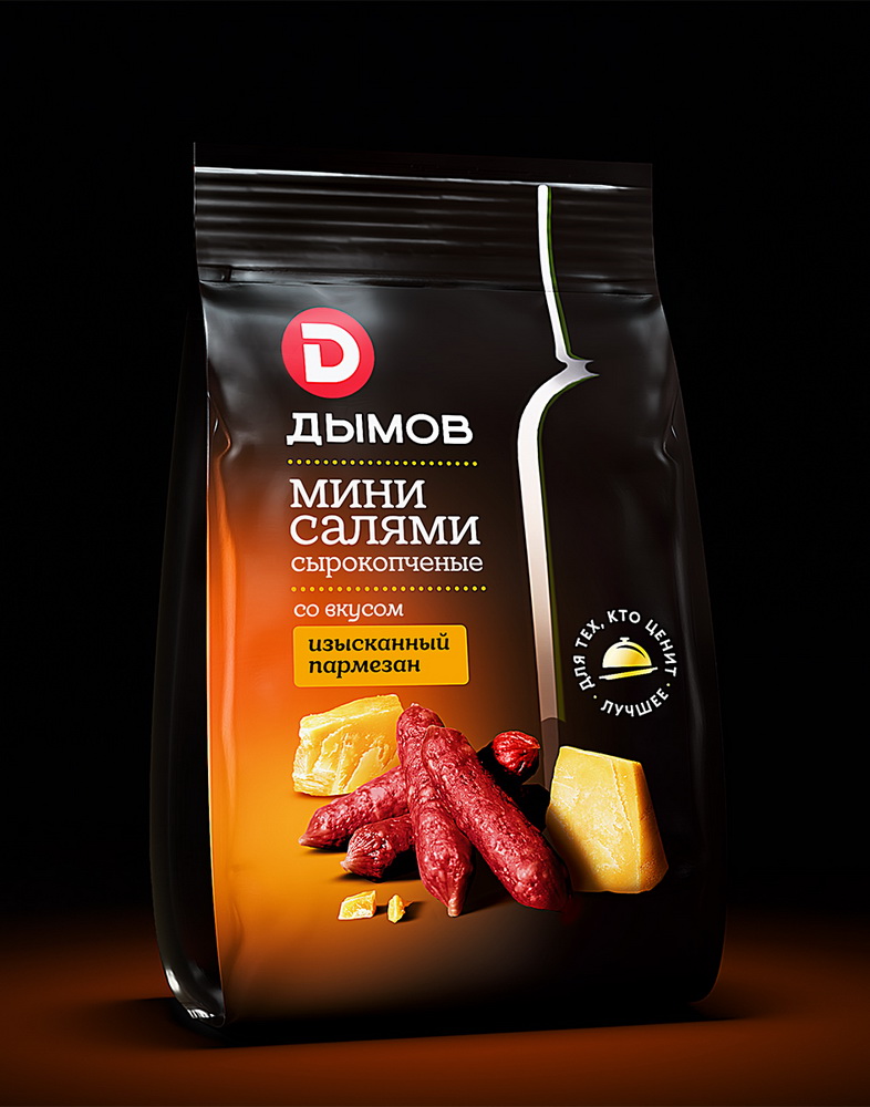 Брендинговое агентство DDVB разработало дизайн упаковки для мясных снеков "Мини-салями" от бренда "Дымов".