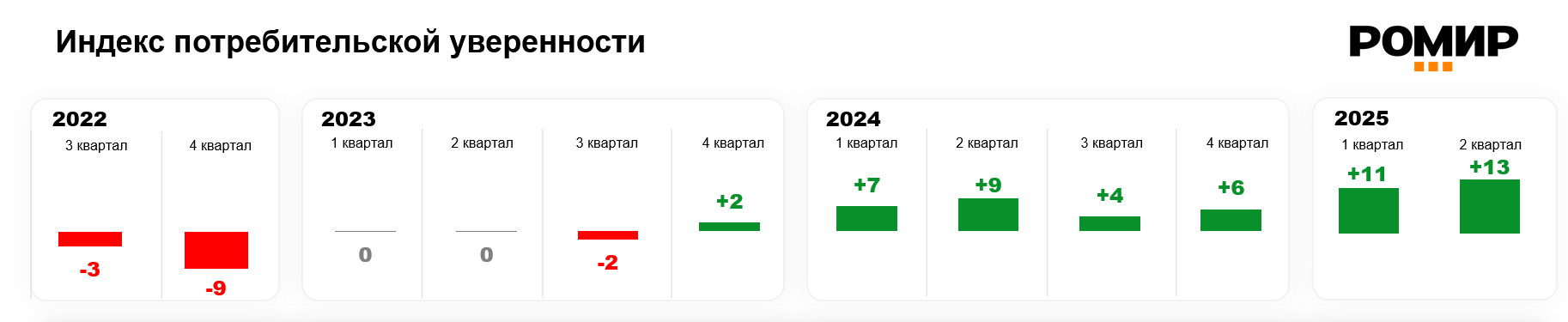 РОМИР проанализировал потребительские настроения россиян в 1–2 кв. 2025 года.
