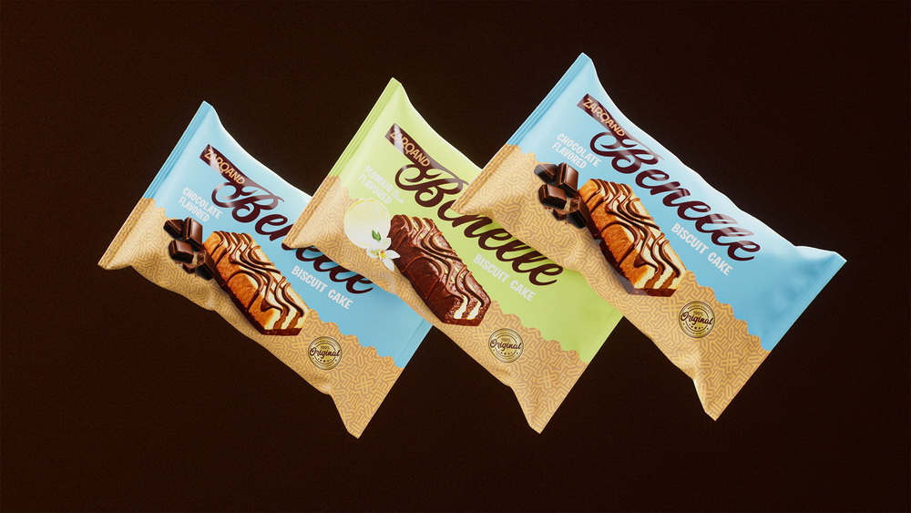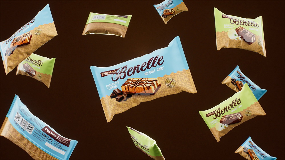 В агентстве Minim разработали дизайн упаковки для бисквитных кексов Benelle. Компания Zarqand вывела на рынок новый продукт — кексы Benelle с двумя вкусами: шоколад и ваниль. Они предназначены для локального рынка Узбекистана. Перед дизайнерами стояла задача создать упаковку, которая подчеркнёт качество и премиальность продукта, делая его достойным выбором для любого стола.