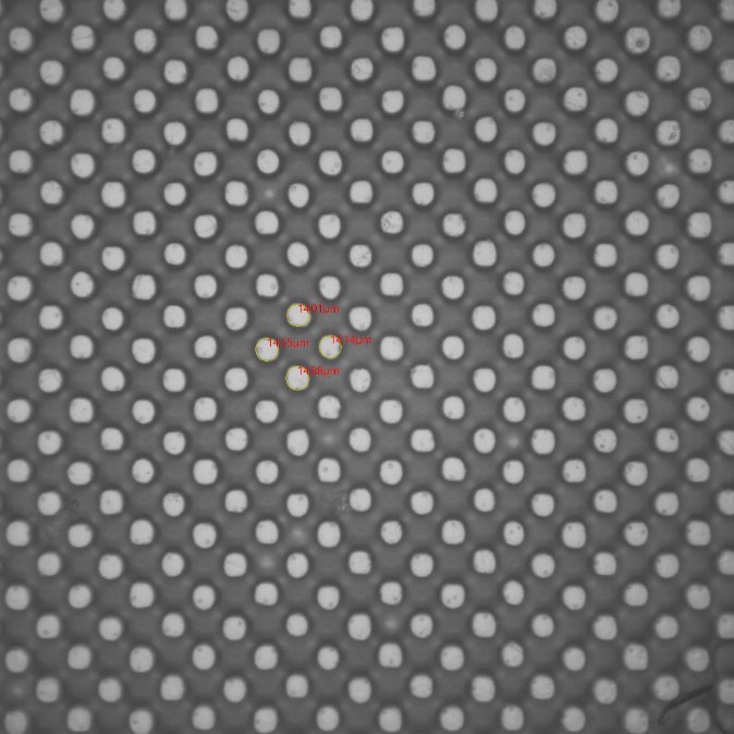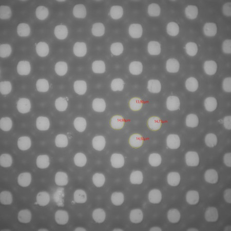 Оборудование работает в связке с программой с множеством настроек. В программе можно составлять автоматический отчет по измерениям, диапазон которых ограничен только фокусом объектива. В этой комплектации установлена камера с широкой матрицей 9MP. А при 100Х объективе возможно измерять объекты размером в несколько микрон.