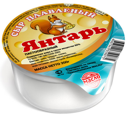 Торговый дом "Краснобаковское МАСЛО" обновляет дизайн плавленых сыров 100 г и 200 г в полимерных стаканах "Янтарь", "Дружка", "Краснобаковский Сливочный" и "Краснобаковский с белыми грибами" производства ООО "Краснобаковские Молочные Продукты".